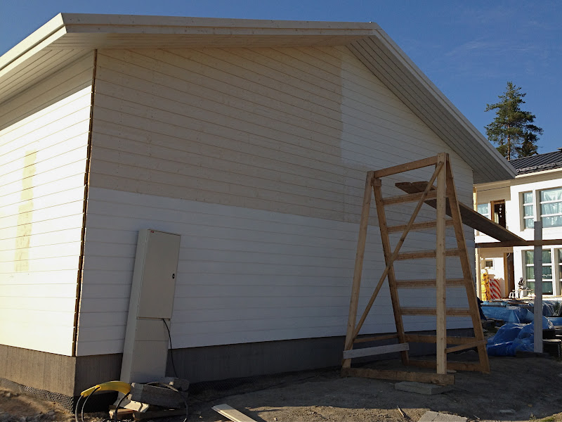 | Tien puolelta seinä on maalattu osin kahteen kertaan. |